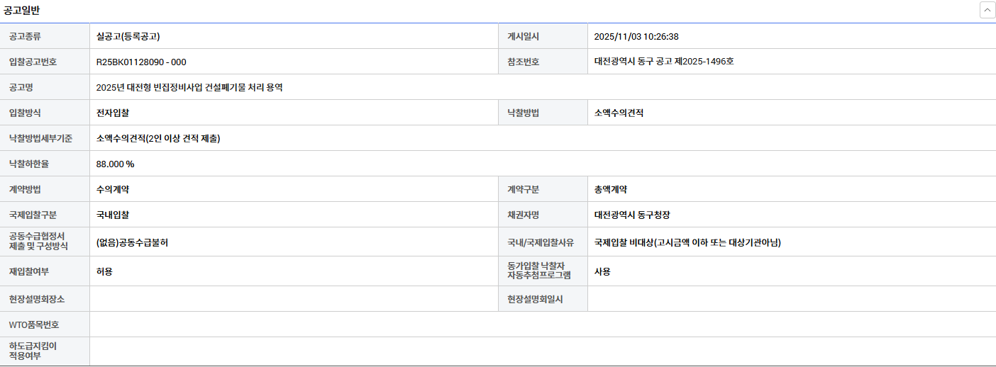 | 10638 | 오정로 외 1개소 도로정비공사 폐기물처리용역 링크 있으면 표시 | 한국환경산업협회 | 2025-11-06 |