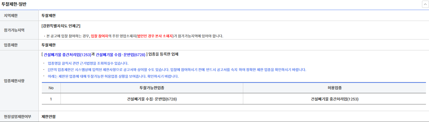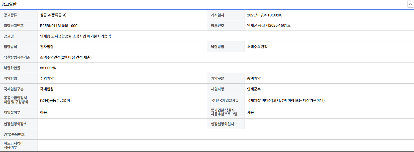 | 열람중 | 인제읍 도시생활공원 조성사업 폐기물처리용역 링크 있으면 표시 | 한국환경산업협회 | 2025-11-04 |