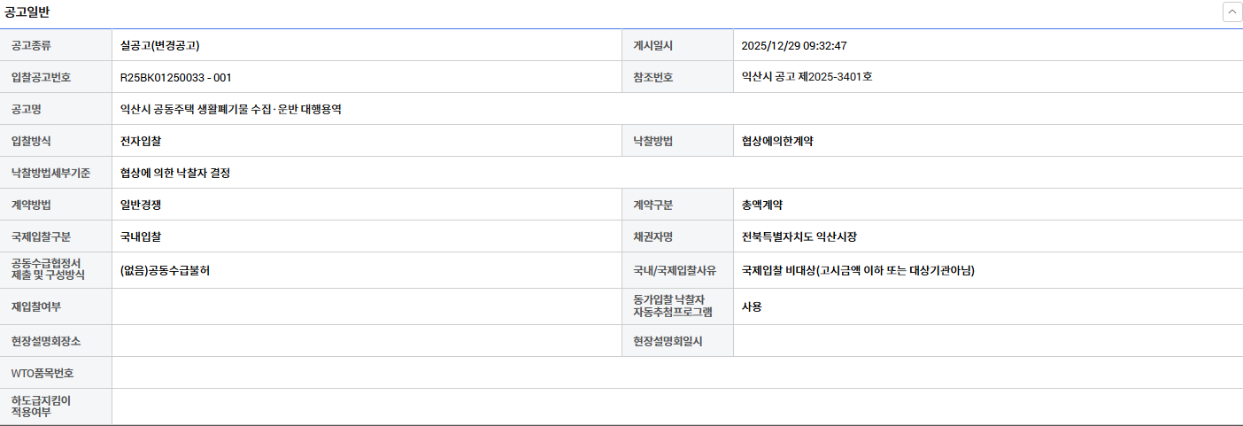 | 열람중 | 익산시 공동주택 생활폐기물 수집·운반 대행용역 링크 있으면 표시 | 한국환경산업협회 | 2025-12-29 |