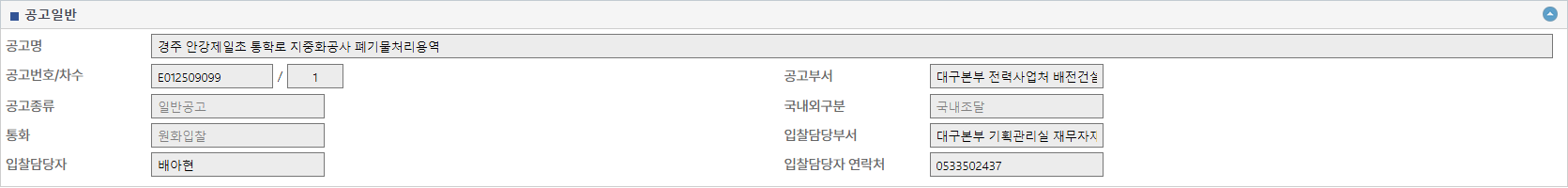 | 열람중 | 경주 안강제일초 통학로 지중화공사 폐기물처리용역 링크 있으면 표시 | 한국환경산업협회 | 2025-12-30 |