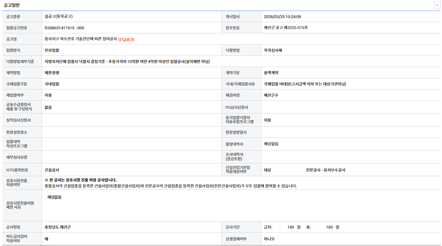 | 11082 | 대구 동부~용대간 도로건설공사 건설폐기물 처리용역 링크 있으면 표시 | 한국환경산업협회 | 2026-03-25 |
