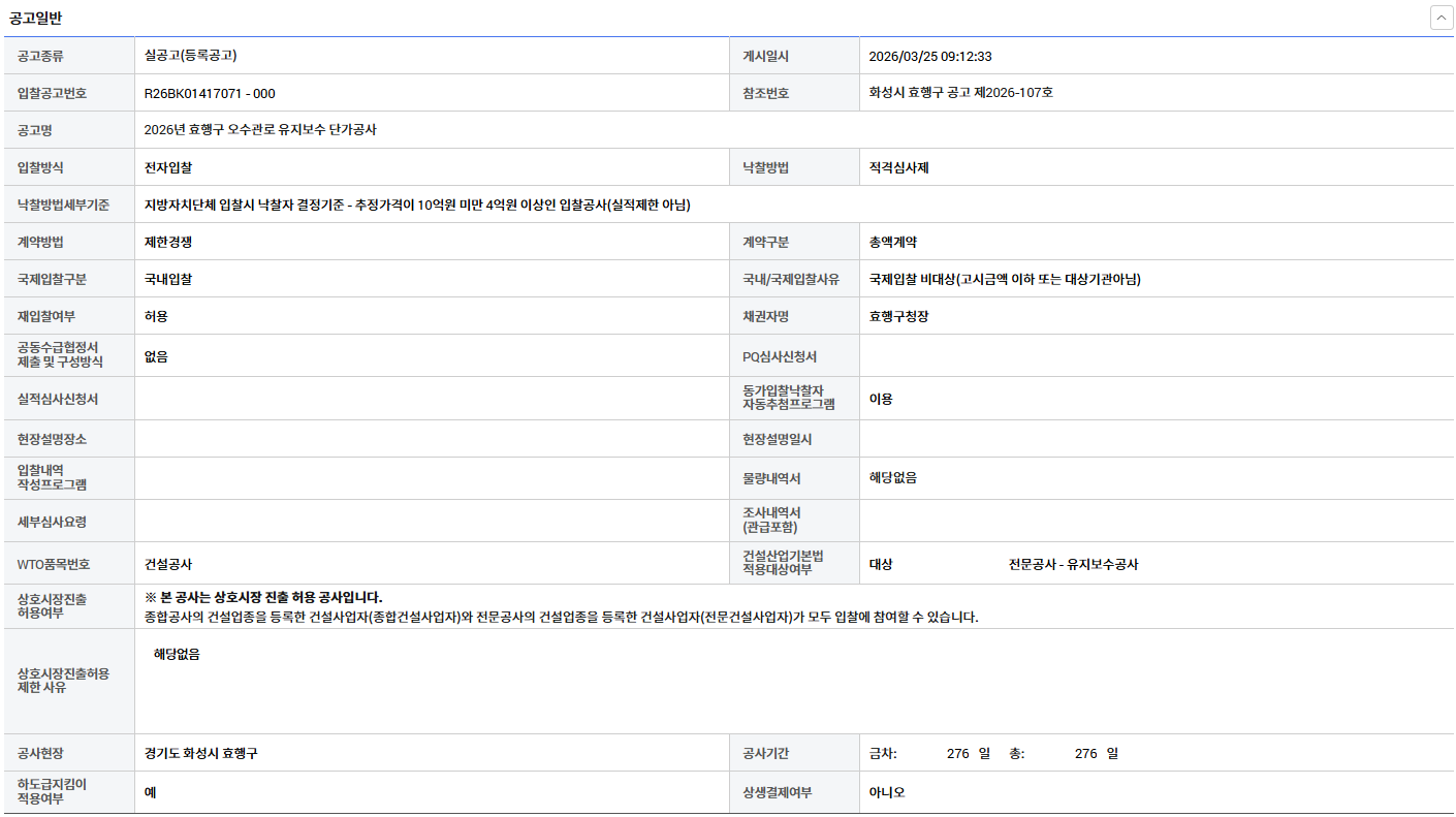 | 열람중 | 경기 효행구 오수관로 유지보수 단가공사 링크 있으면 표시 | 한국환경산업협회 | 2026-03-25 |