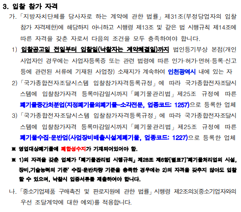 인천 광역처리시설 정비기간 등 미처리되는 생활폐기물 위탁처리 용역