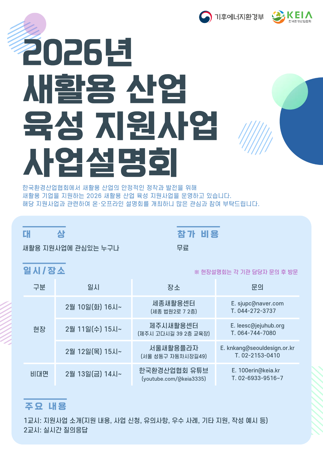 ㅇ 행사명: 2026년 새활용 산업 육성 지원사업 사업설명회