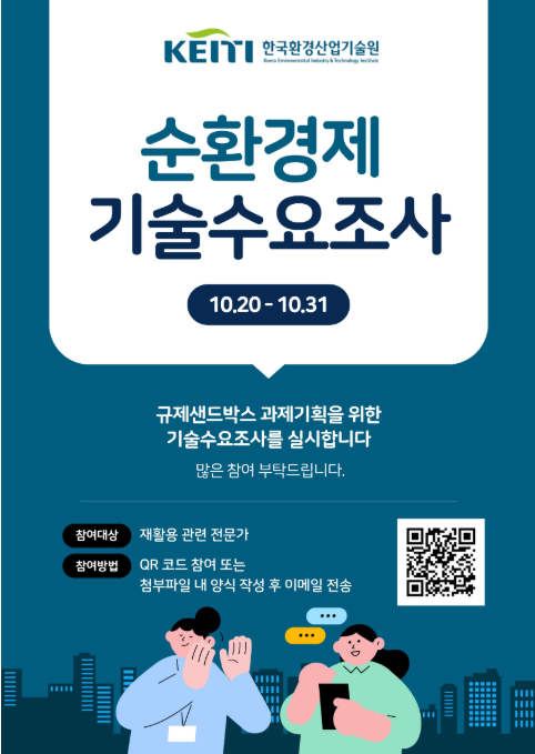 「순환경제 규제샌드박스 기술수요조사」를 진행하고 있습니다.