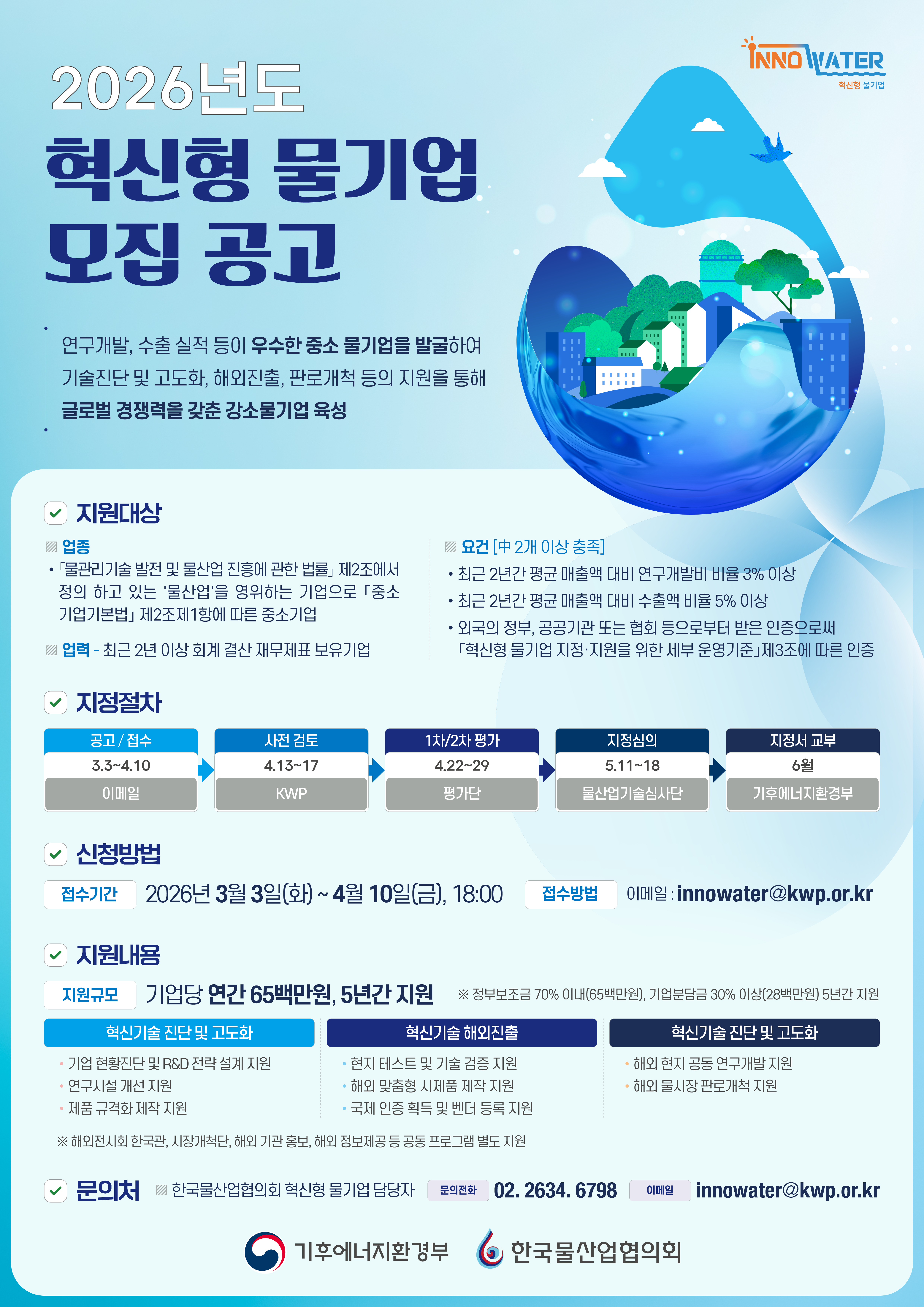[기후에너지환경부] 2026년 혁신형 물기업 지원 대상 모집 공고 (~4.10)