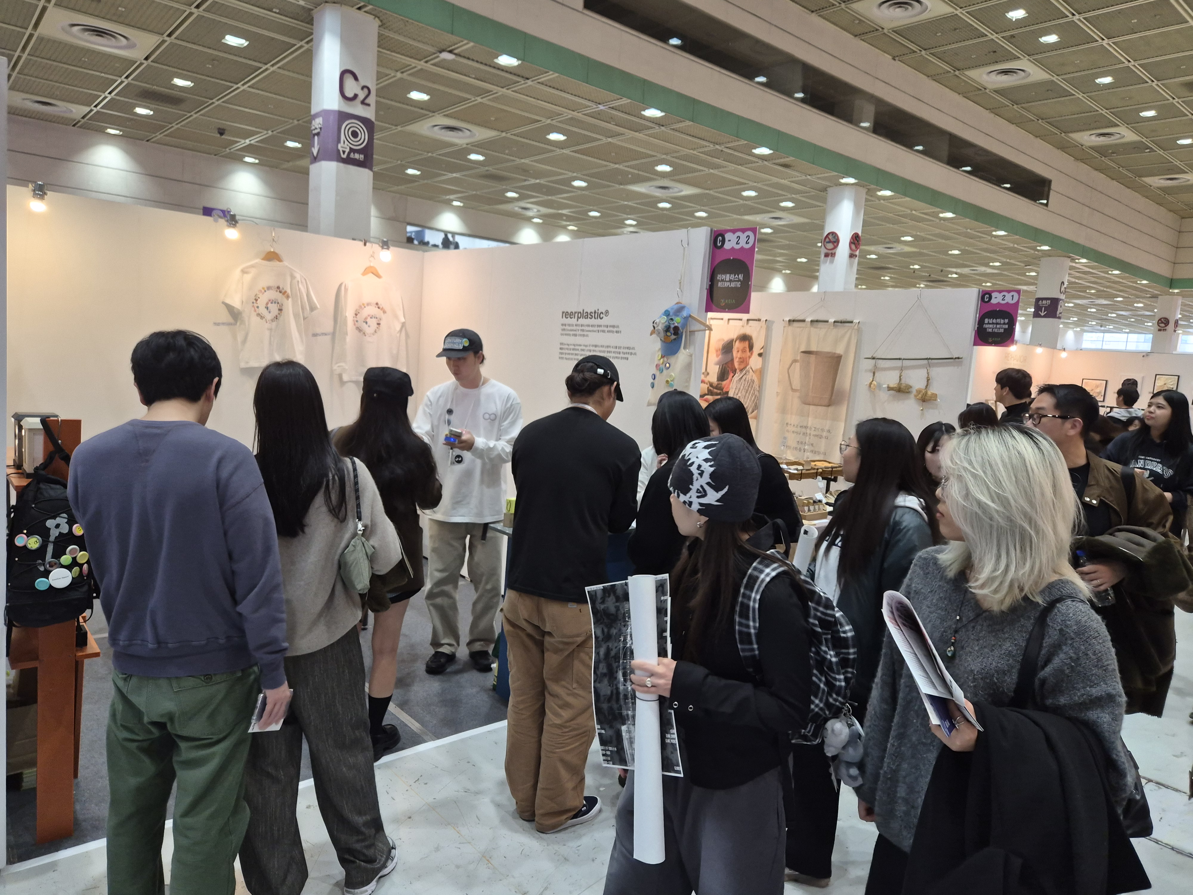 새활용 단체관에는 국내 최대의 디자인 전시회답게 많은 새활용 기업들이 도전하는 폐플라스틱, 폐섬유 소재에 독창적인 디자인을 더한 제품은 물론, 굴패각, 브로콜리 심, 귤껍질, 깻묵 등 독특한 폐자원을 활용한 새활용 제품들이 전시되어 방문객들의 눈길을 끌었다.
