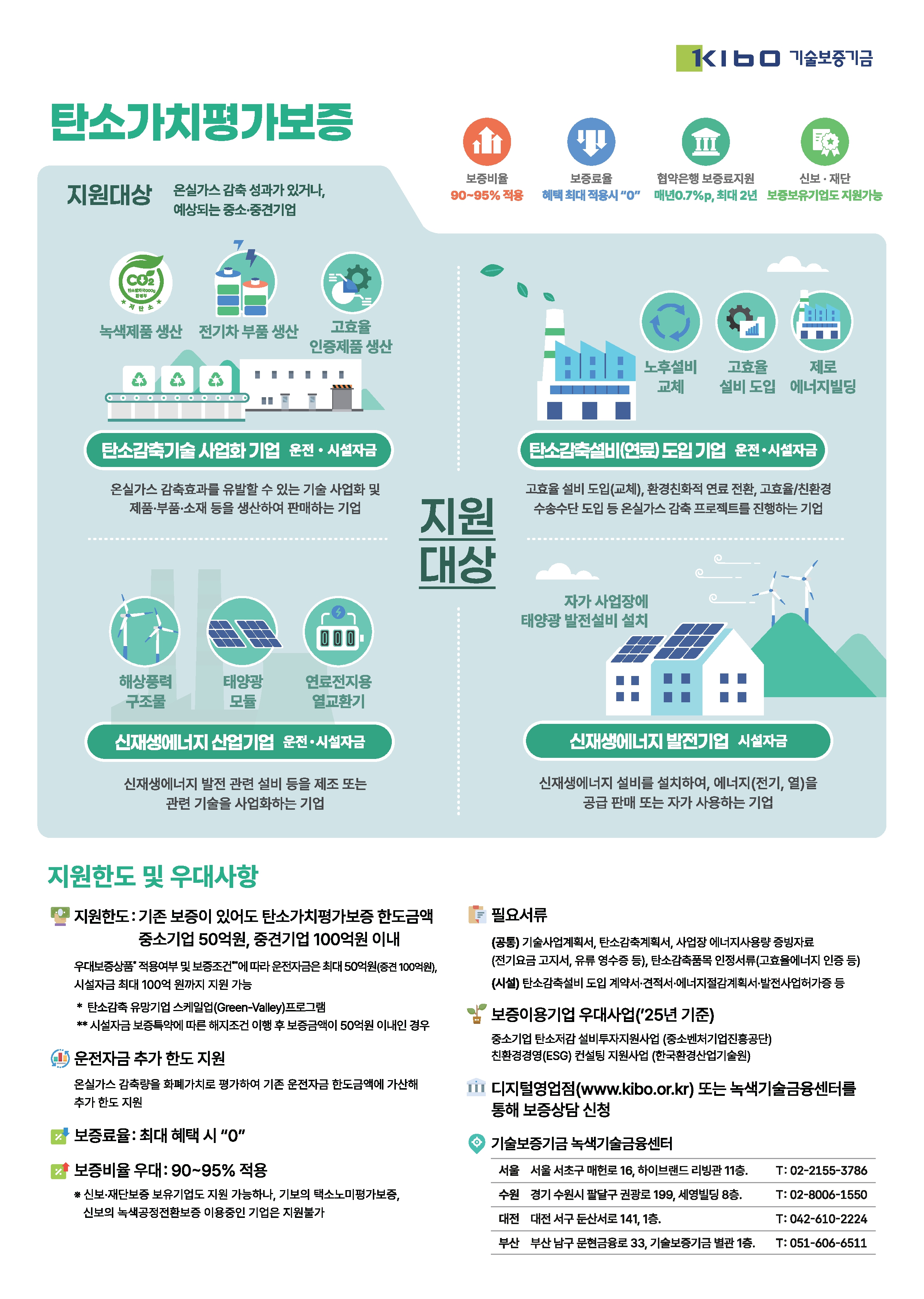 - 기업 활동이 한국형 녹색경제활동 기준에 적합한지 평가하여 적합 시 우대보증 제공