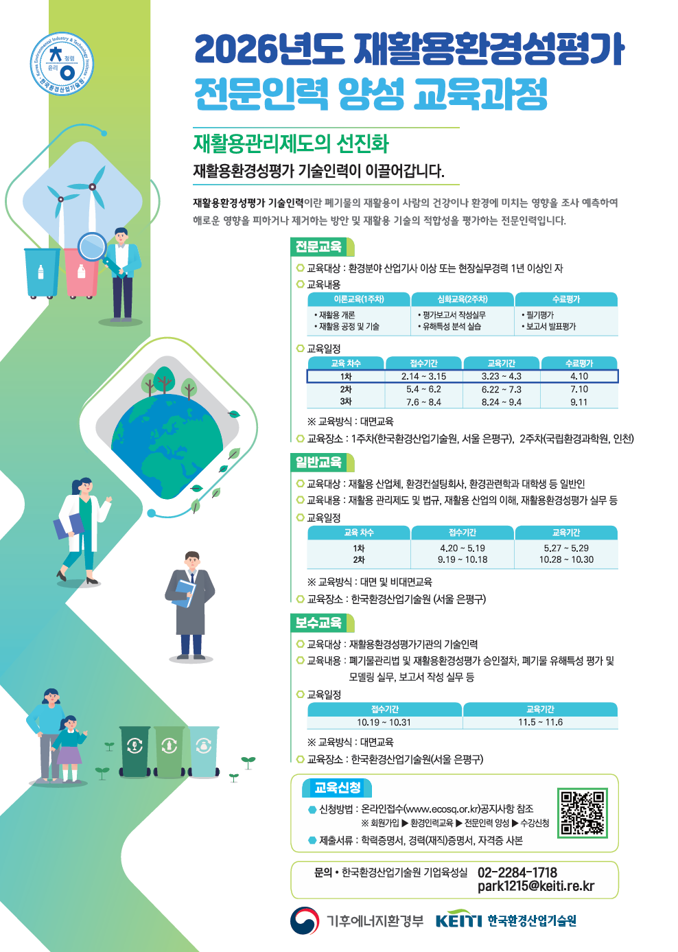 [한국환경산업기술원] '26-1차 재활용환경성평가 전문인력 양성과정 교육생 모집 안내